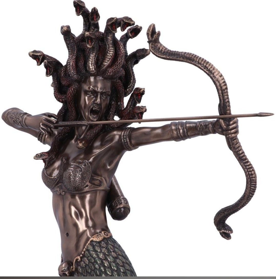 Bronzed Medusa figurine is cast in the finest bronze resin
